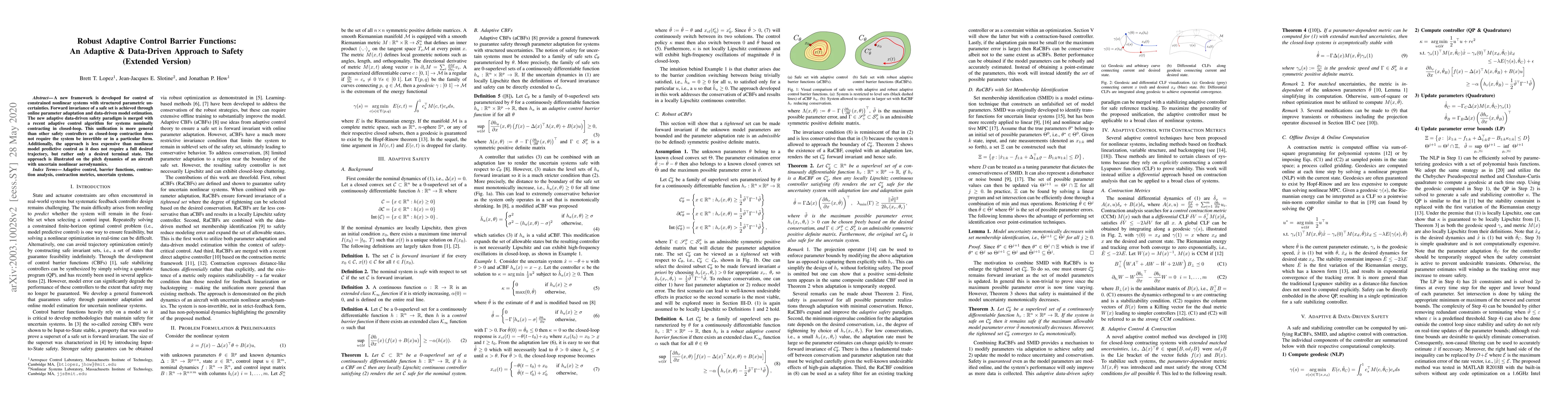 A new framework is developed for control of constrained nonlinear systems with structured parametric uncertainties. Forward invariance of a safe set is achieved through online parameter adaptation and data-driven model estimation. The new adaptive data-driven safety paradigm is merged with a recent adaptive control algorithm for systems nominally contracting in closed-loop. This unification is more general than other safety controllers as closed-loop contraction does not require the system be invertible or in a particular form. Additionally, the approach is less expensive than nonlinear model predictive control as it does not require a full desired trajectory, but rather only a desired terminal state. The approach is illustrated on the pitch dynamics of an aircraft with uncertain nonlinear aerodynamics.