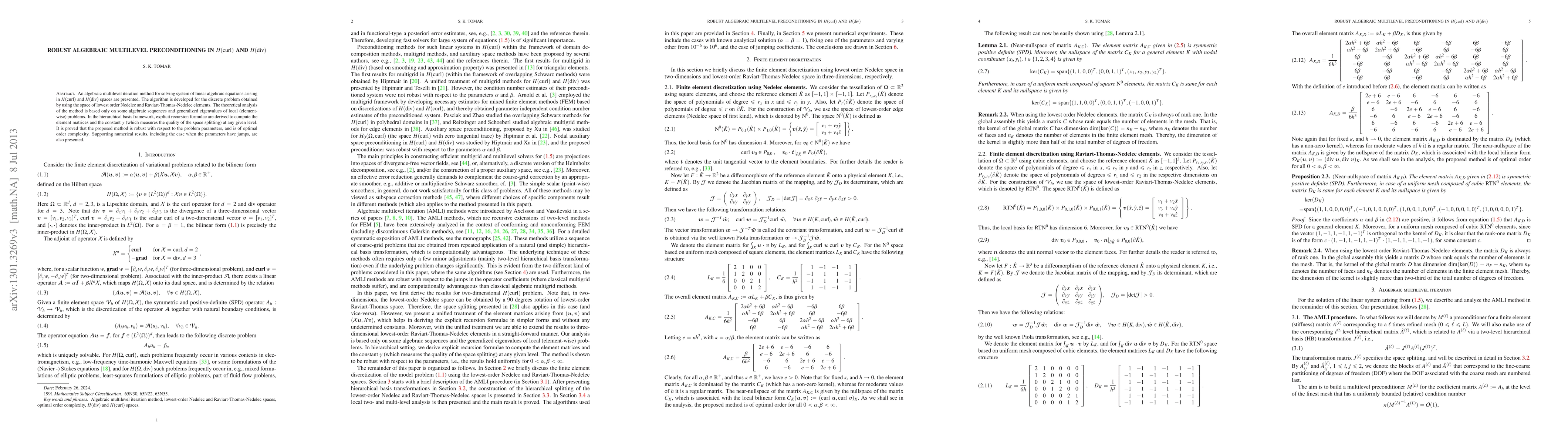 This paper presents an algebraic multilevel preconditioning method for solving linear systems in $H(\mathrm{curl})$ and $H(\mathrm{div})$ spaces, developed for Nedelec and Raviart-Thomas-Nedelec elements. The method is shown to be robust and optimal, with theoretical analysis based on algebraic sequences and generalized eigenvalues, and supported by numerical results.