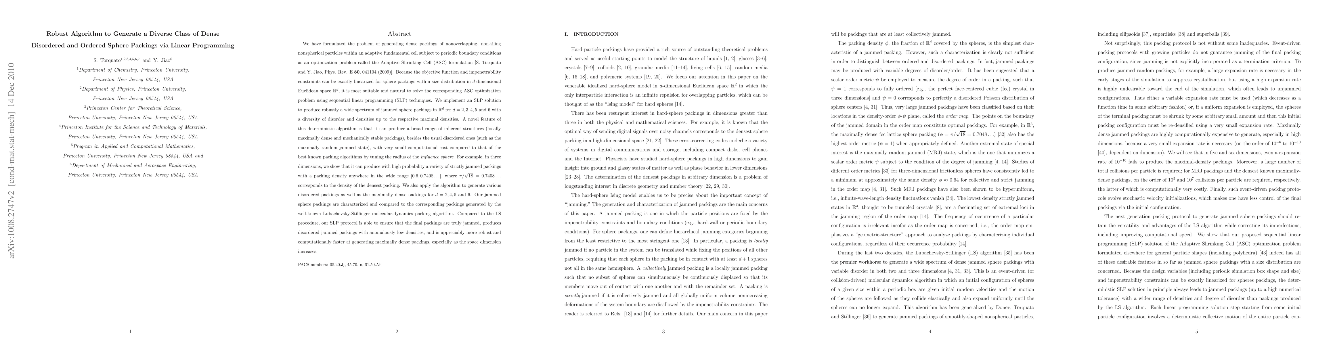 This paper presents a robust algorithm using sequential linear programming to generate a diverse class of dense disordered and ordered sphere packings in $d$-dimensional space. The Adaptive Shrinking Cell formulation is employed to solve the optimization problem, producing jammed packings with varying densities and disorder levels efficiently and robustly.