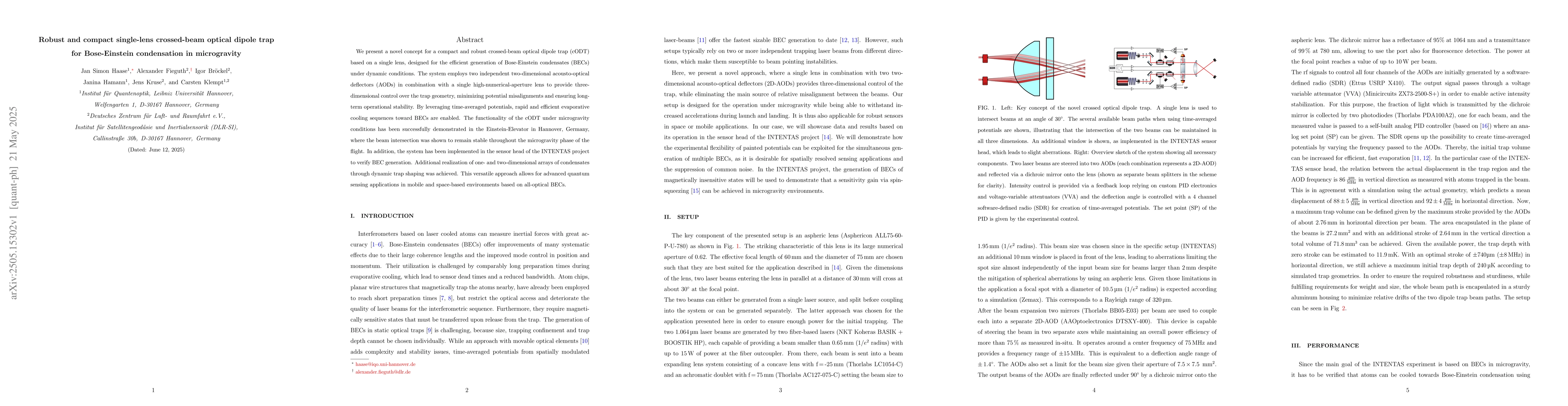 The research introduces a compact and robust crossed-beam optical dipole trap (cODT) using a single high-numerical-aperture lens, two independent two-dimensional acousto-optical deflectors (AODs), and time-averaged potentials for efficient Bose-Einstein condensate (BEC) generation under dynamic conditions.