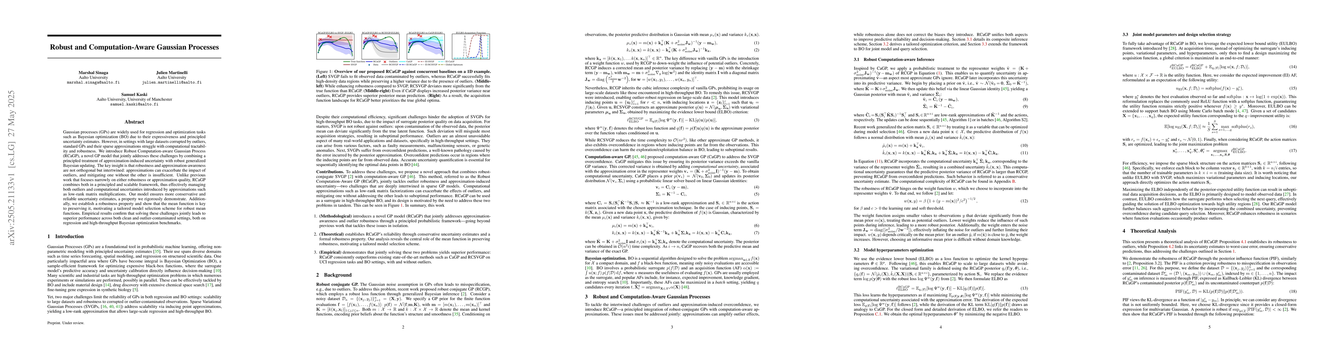 The research introduces Robust Computation-aware Gaussian Processes (RCaGP), a novel GP model that combines robust generalized Bayesian updating with approximation-induced uncertainty treatment, addressing both computational tractability and robustness in large datasets with outliers.