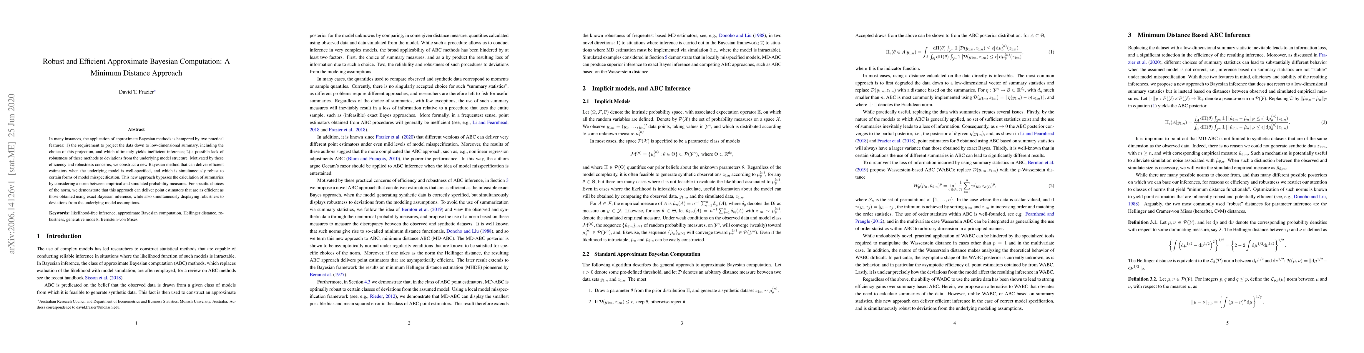 In many instances, the application of approximate Bayesian methods is hampered by two practical features: 1) the requirement to project the data down to low-dimensional summary, including the choice of this projection, which ultimately yields inefficient inference; 2) a possible lack of robustness to deviations from the underlying model structure. Motivated by these efficiency and robustness concerns, we construct a new Bayesian method that can deliver efficient estimators when the underlying model is well-specified, and which is simultaneously robust to certain forms of model misspecification. This new approach bypasses the calculation of summaries by considering a norm between empirical and simulated probability measures. For specific choices of the norm, we demonstrate that this approach can deliver point estimators that are as efficient as those obtained using exact Bayesian inference, while also simultaneously displaying robustness to deviations from the underlying model assumptions.