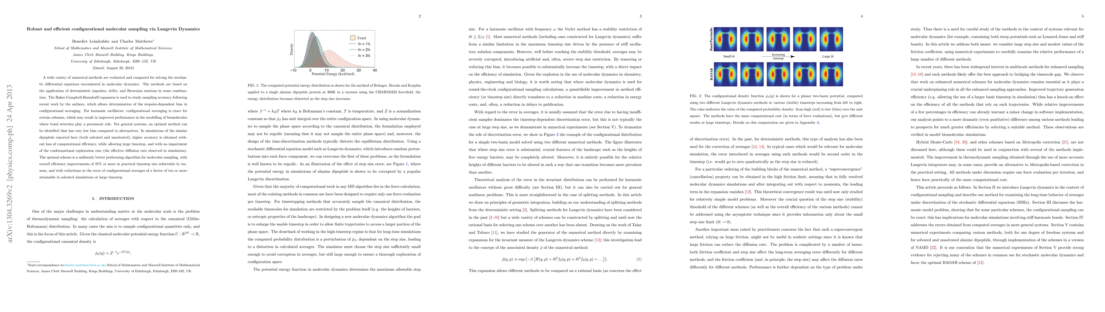 This paper evaluates various numerical methods for solving stochastic differential equations in molecular dynamics, identifying an optimal scheme based on Langevin dynamics that achieves higher accuracy and efficiency, particularly for biomolecular systems, with significant improvements in both computational time and error reduction.
