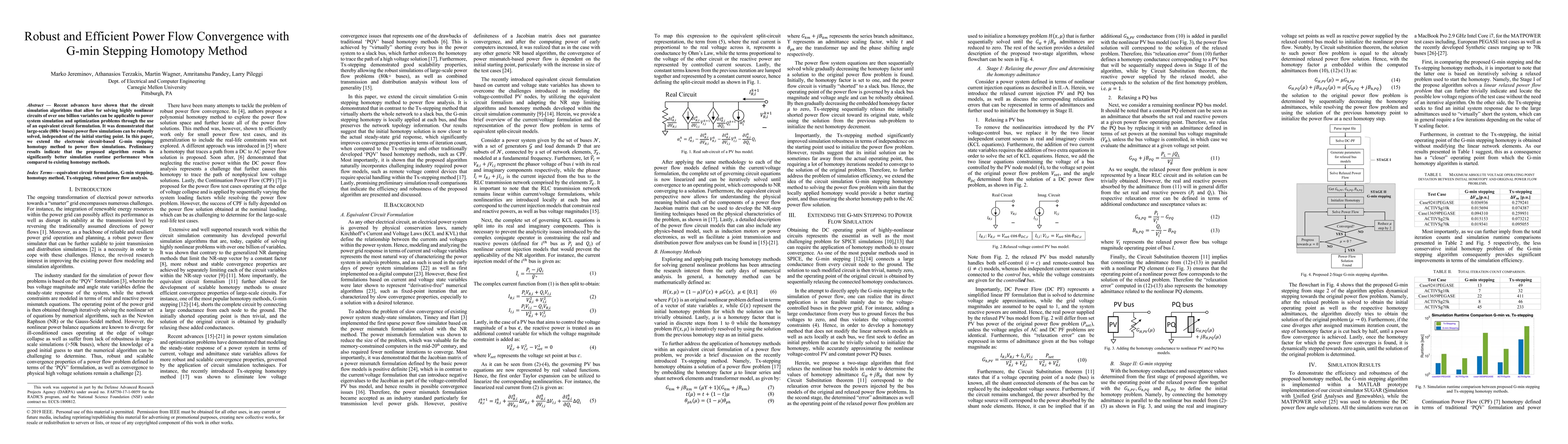 This paper extends the G-min stepping homotopy method from circuit simulation to power flow simulations, enabling robust and efficient solutions for large-scale power systems. Preliminary results show significantly improved runtime performance compared to existing homotopy methods.