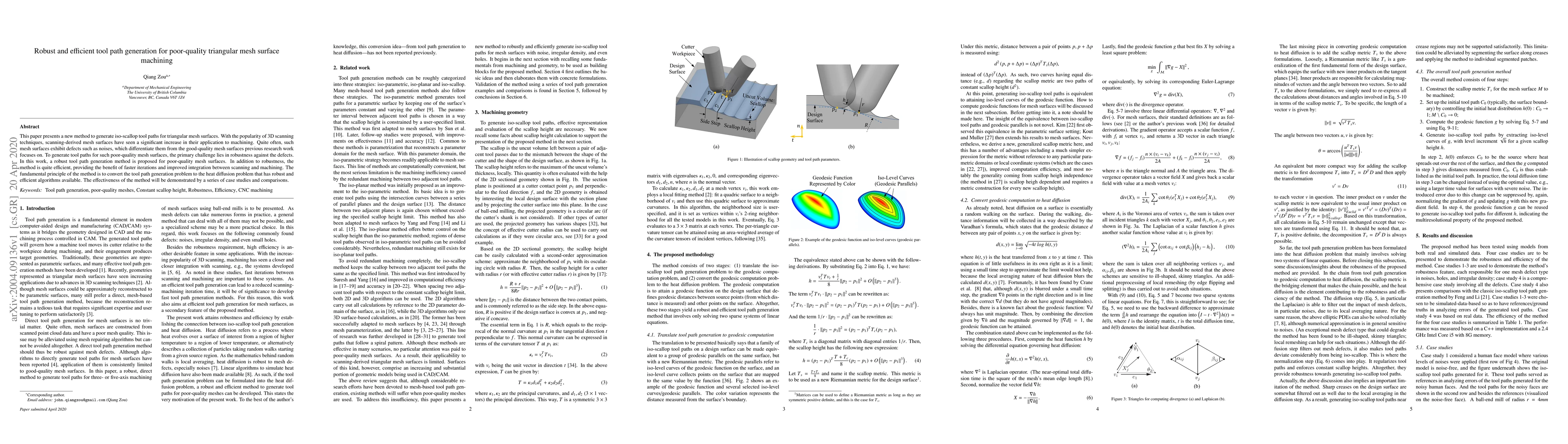 This paper presents a new method to generate iso-scallop tool paths for triangular mesh surfaces. With the popularity of 3D scanning techniques, scanning-derived mesh surfaces have seen a significant increase in their application to machining. Quite often, such mesh surfaces exhibit defects such as noises, which differentiate them from the good-quality mesh surfaces previous research work focuses on. To generate tool paths for such poor-quality mesh surfaces, the primary challenge lies in robustness against the defects. In this work, a robust tool path generation method is proposed for poor-quality mesh surfaces. In addition to robustness, the method is quite efficient, providing the benefit of faster iterations and improved integration between scanning and machining. The fundamental principle of the method is to convert the tool path generation problem to the heat diffusion problem that has robust and efficient algorithms available. The effectiveness of the method will be demonstrated by a series of case studies and comparisons.