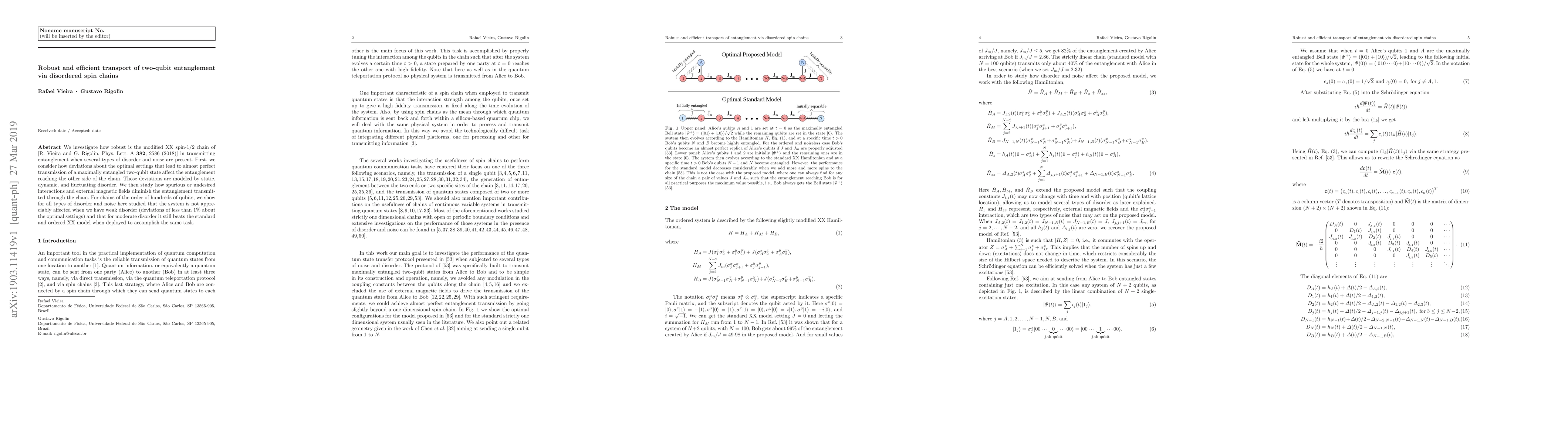 This study examines the robustness of a modified XX spin-1/2 chain in transmitting entangled two-qubit states amidst various disorder types and noise. Results indicate that the system remains unaffected by weak disorder (less than 1% deviation from optimal settings) and outperforms standard models even with moderate disorder, making it suitable for large-scale quantum information transfer.