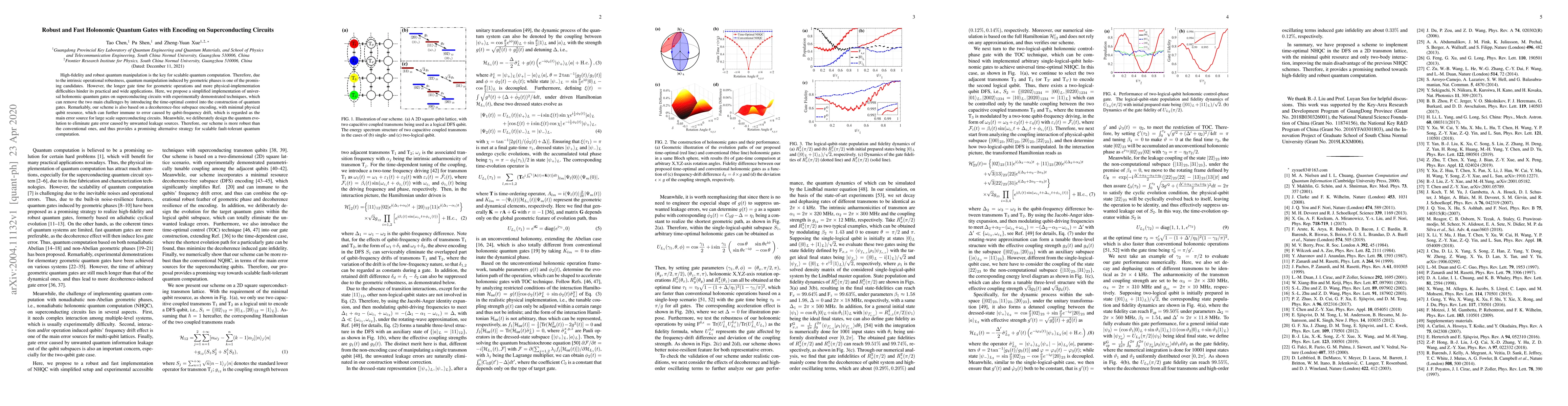 This paper proposes a novel method for implementing robust and fast holonomic quantum gates on superconducting circuits, addressing the challenges of long gate times and physical implementation difficulties. The proposed scheme utilizes time-optimal control and a decoherence-free subspace encoding to enhance robustness and minimize errors, offering a promising alternative for scalable quantum computation.
