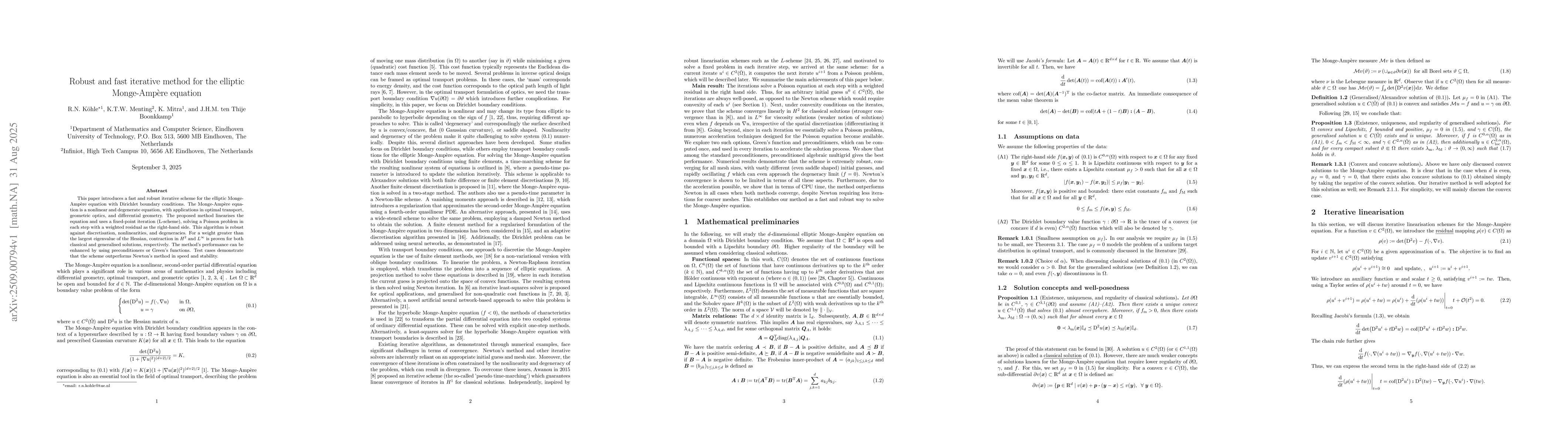 This paper introduces a fast and robust iterative scheme for the elliptic Monge-Amp\`ere equation with Dirichlet boundary conditions. The Monge-Amp\`ere equation is a nonlinear and degenerate equation, with applications in optimal transport, geometric optics, and differential geometry. The proposed method linearises the equation and uses a fixed-point iteration (L-scheme), solving a Poisson problem in each step with a weighted residual as the right-hand side. This algorithm is robust against discretisation, nonlinearities, and degeneracies. For a weight greater than the largest eigenvalue of the Hessian, contraction in $H^2$ and $L^\infty$ is proven for both classical and generalised solutions, respectively. The method's performance can be enhanced by using preconditioners or Green's functions. Test cases demonstrate that the scheme outperforms Newton's method in speed and stability.