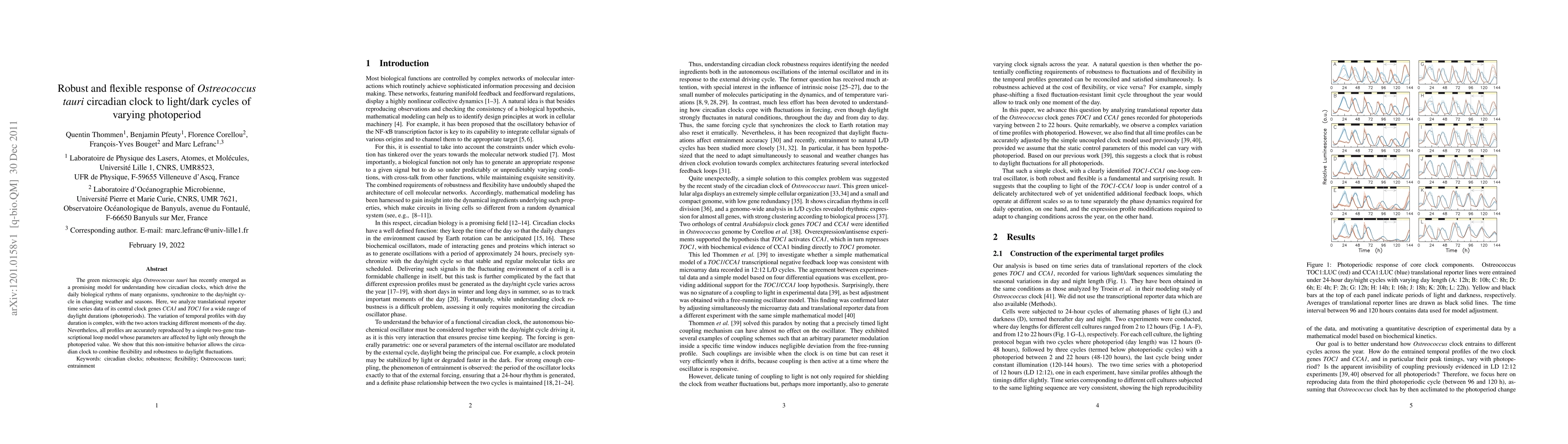 This study reveals how Ostreococcus tauri's circadian clock adapts flexibly and robustly to varying photoperiods through a simple two-gene loop model, demonstrating its ability to synchronize daily rhythms despite changing daylight conditions. The model's parameters adjust based on photoperiod, showcasing the clock's resilience and adaptability.