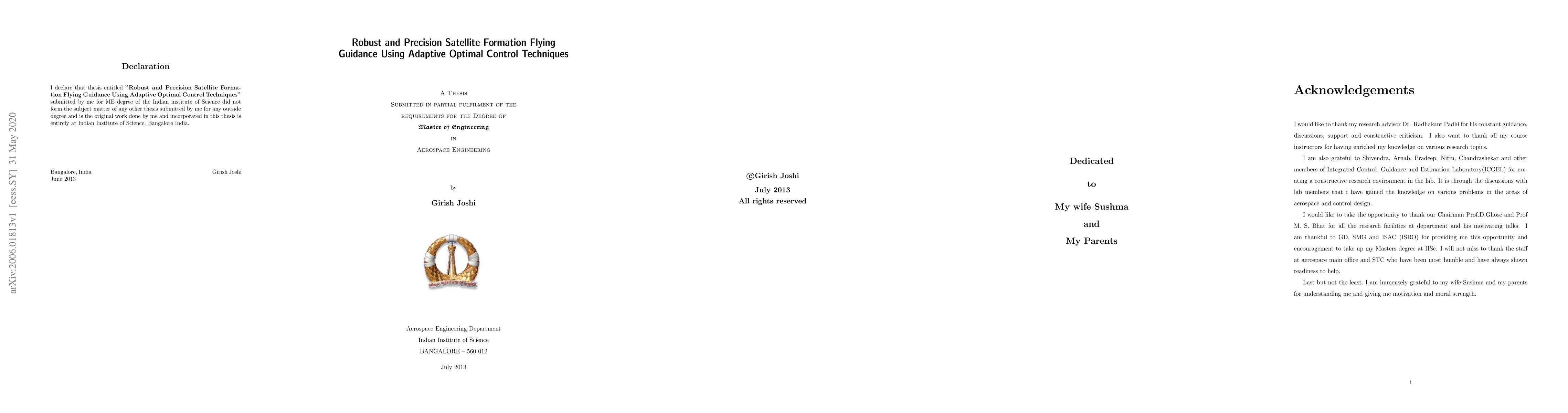 The main focus of the work presented in this thesis is to develop an optimal control based formation flying control strategy for high precision formation flying of small satellites that have restricted computation and storage capacity. Using the recently developed model predictive static programming (MPSP), and Generalized MPSP algorithm a suboptimal guidance logic is presented for the formation flying of small satellites. The proposed guidance scheme is valid both for high eccentricity chief satellite orbits as well as the large separation distance between the chief and deputy satellites. Comparative study with standard Linear Quadratic Regulator (LQR) solution (which serves as a guess solution for MPSP) and another nonlinear controller, Finite-time State-Dependent Ricatti Equation (SDRE) reveals that MPSP guidance achieves the objective with higher accuracy and with a lesser amount of control usage.