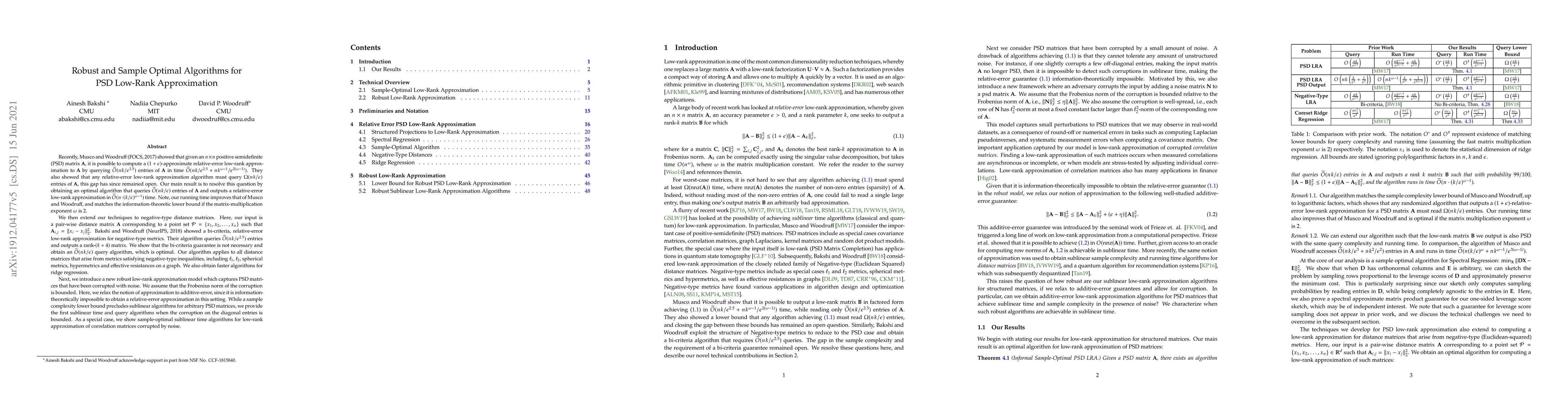 This paper presents optimal algorithms for low-rank approximation of positive semidefinite matrices and negative-type distance matrices, achieving both optimal query complexity and improved running time. The authors also introduce robust algorithms for noisy PSD matrices, providing sample-optimal sublinear time solutions for specific cases like noisy correlation matrices.
