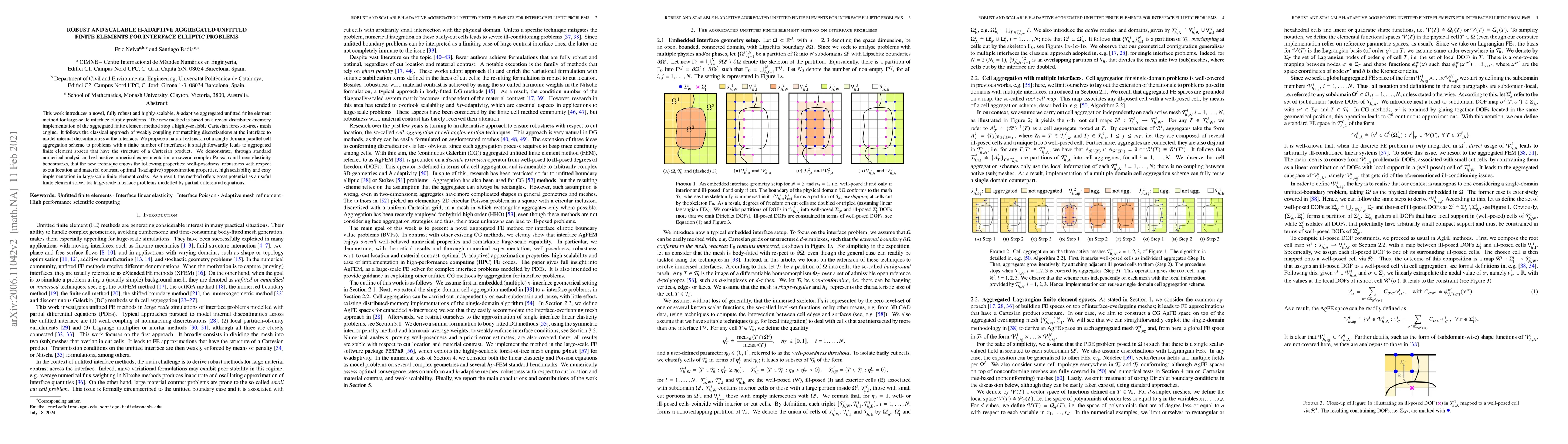 This paper presents a scalable, $h$-adaptive aggregated unfitted finite element method for interface elliptic problems, demonstrating robustness, optimal approximation, and high scalability through numerical analysis and experiments on complex benchmarks. The method effectively models internal discontinuities and scales well for large-scale simulations.