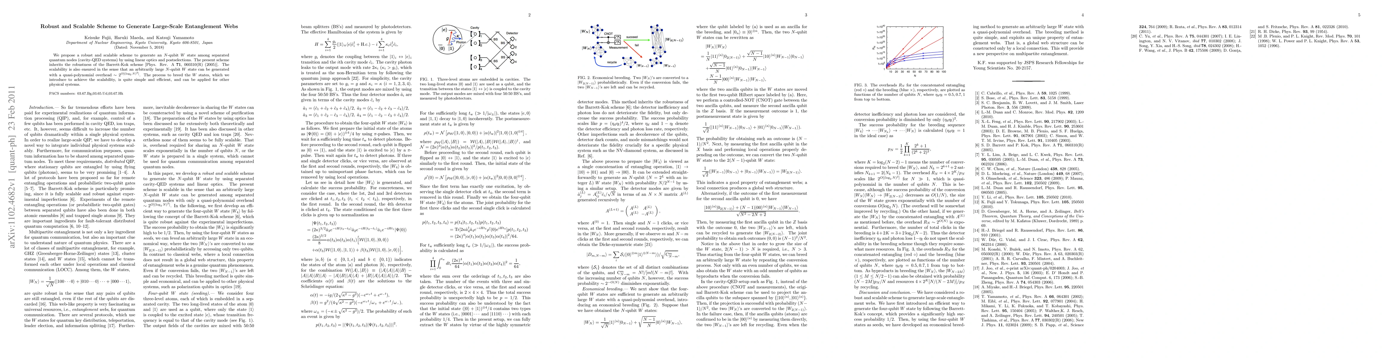 We propose a robust and scalable scheme to generate an $N$-qubit $W$ state among separated quantum nodes (cavity-QED systems) by using linear optics and postselections. The present scheme inherits the robustness of the Barrett-Kok scheme [Phys. Rev. A {\bf 71}, 060310(R) (2005)]. The scalability is also ensured in the sense that an arbitrarily large $N$-qubit $W$ state can be generated with a quasi-polynomial overhead $\sim 2^{O[(\log_2 N)^2]}$. The process to breed the $W$ states, which we introduce to achieve the scalability, is quite simple and efficient, and can be applied for other physical systems.