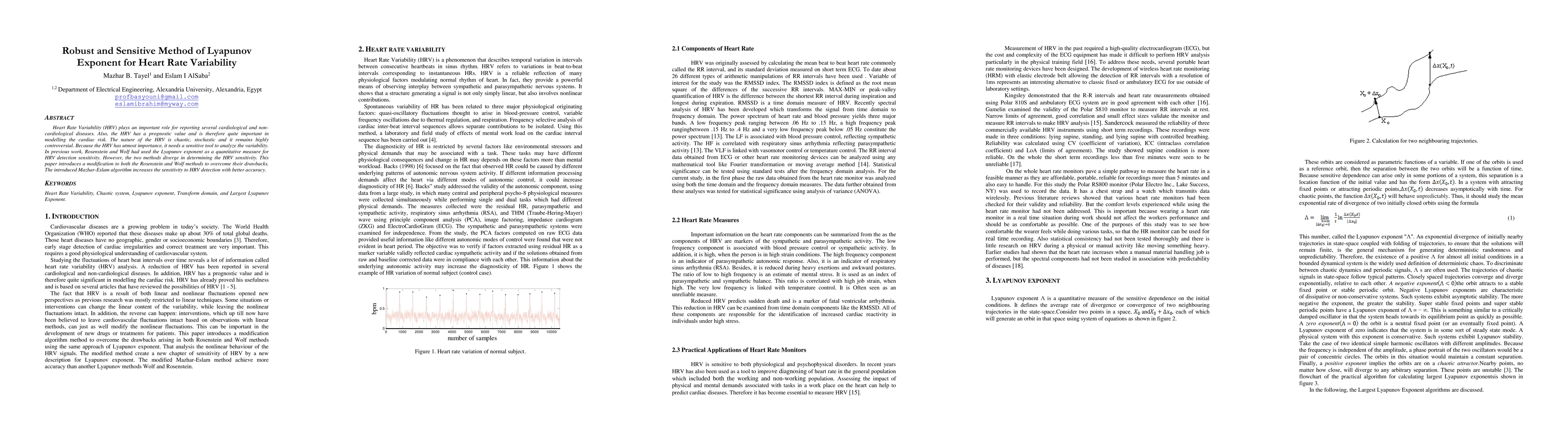 Heart Rate Variability (HRV) plays an important role for reporting several cardiological and non-cardiological diseases. Also, the HRV has a prognostic value and is therefore quite important in modelling the cardiac risk. The nature of the HRV is chaotic, stochastic and it remains highly controversial. Because the HRV has utmost importance, it needs a sensitive tool to analyze the variability. In previous work, Rosenstein and Wolf had used the Lyapunov exponent as a quantitative measure for HRV detection sensitivity. However, the two methods diverge in determining the HRV sensitivity. This paper introduces a modification to both the Rosenstein and Wolf methods to overcome their drawbacks. The introduced Mazhar-Eslam algorithm increases the sensitivity to HRV detection with better accuracy.