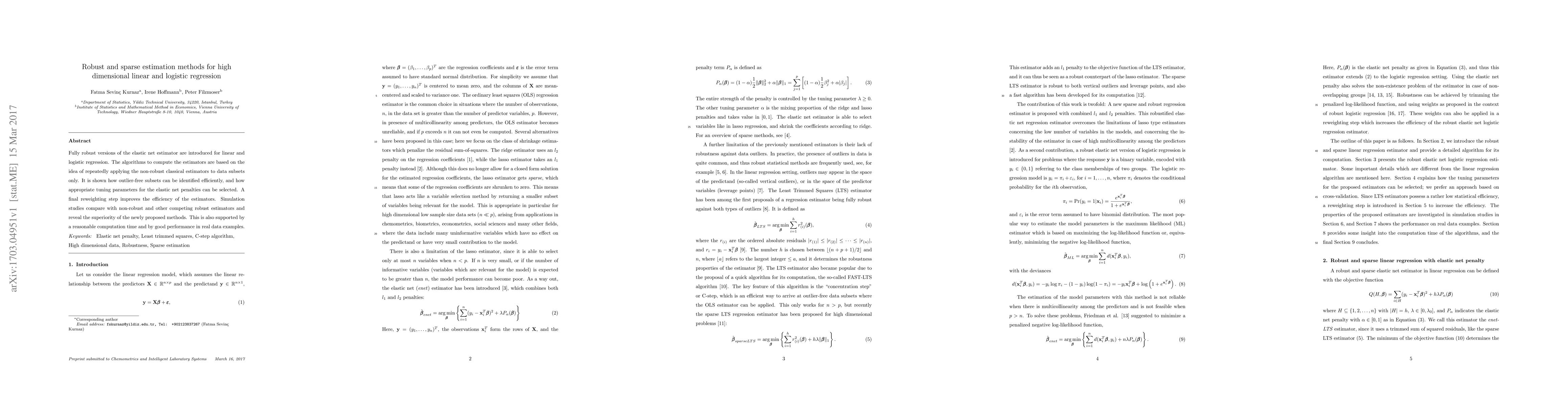 This paper introduces fully robust versions of the elastic net estimator for high-dimensional linear and logistic regression, employing algorithms that identify outlier-free data subsets to improve efficiency. Simulation studies demonstrate the superiority of these methods over non-robust and other robust estimators, with reasonable computation time and good real-world performance.