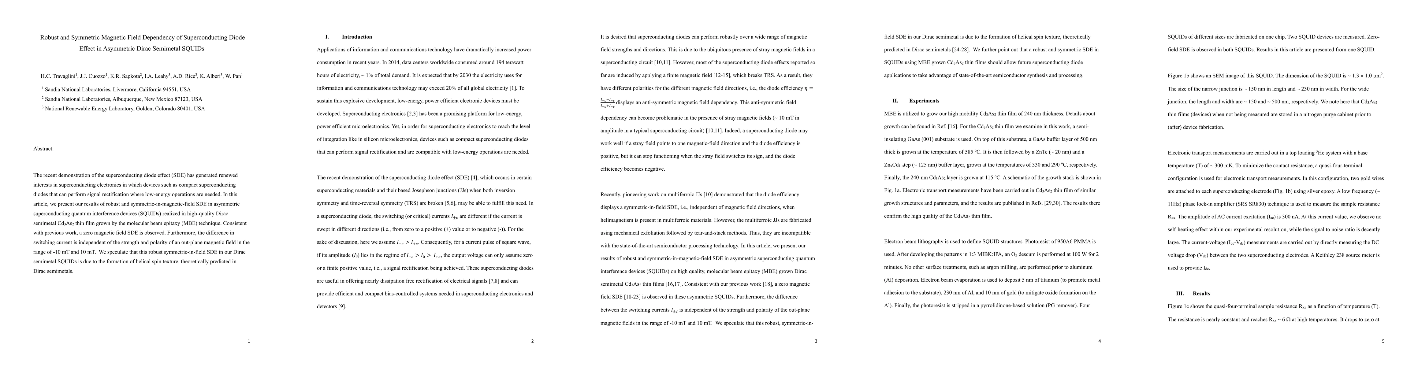 The research utilizes high-quality Dirac semimetal Cd3As2 thin films grown by molecular beam epitaxy (MBE) technique to realize asymmetric superconducting quantum interference devices (SQUIDs).