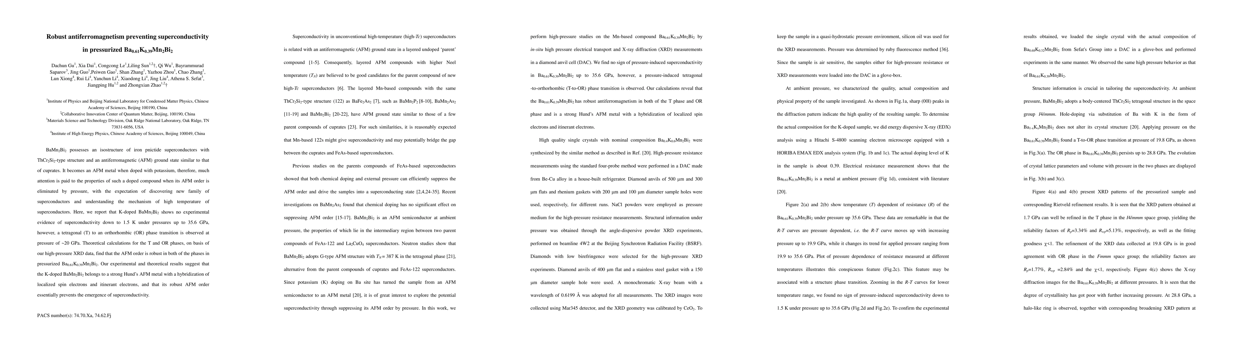 K-doped BaMn2Bi2 shows no superconductivity under high pressure, instead exhibiting robust antiferromagnetism that prevents the emergence of superconductivity due to its hybridization of localized and itinerant electrons.
