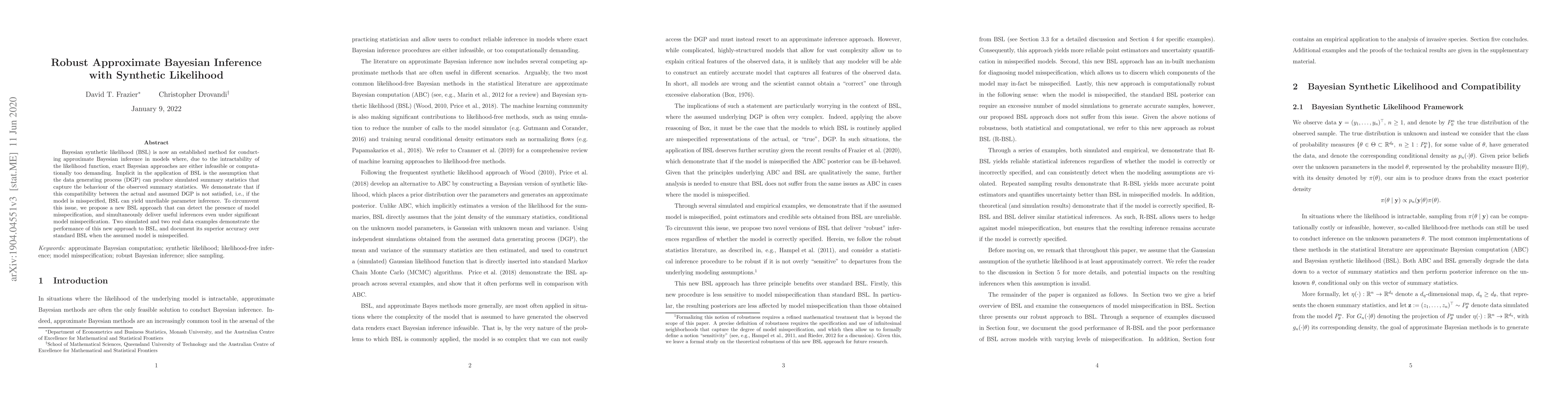 David J. Nott, Christopher Drovandi, David T. Frazier