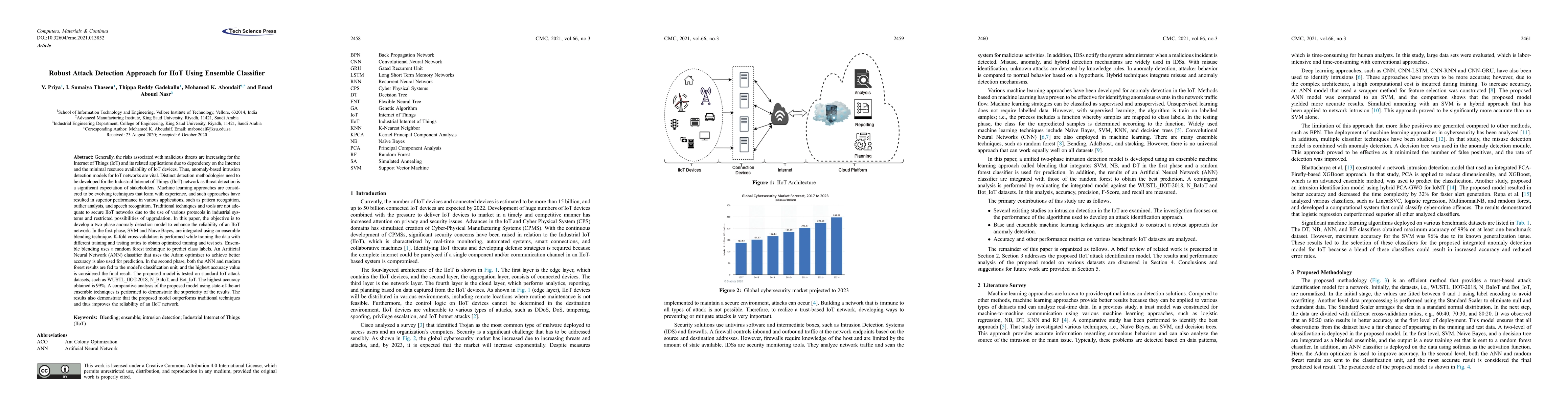 This paper proposes an ensemble classifier combining SVM, Naive Bayes, ANN, and random forest techniques for robust attack detection in IIoT networks. The model achieves 99% accuracy on standard datasets, outperforming traditional methods and enhancing IIoT security.