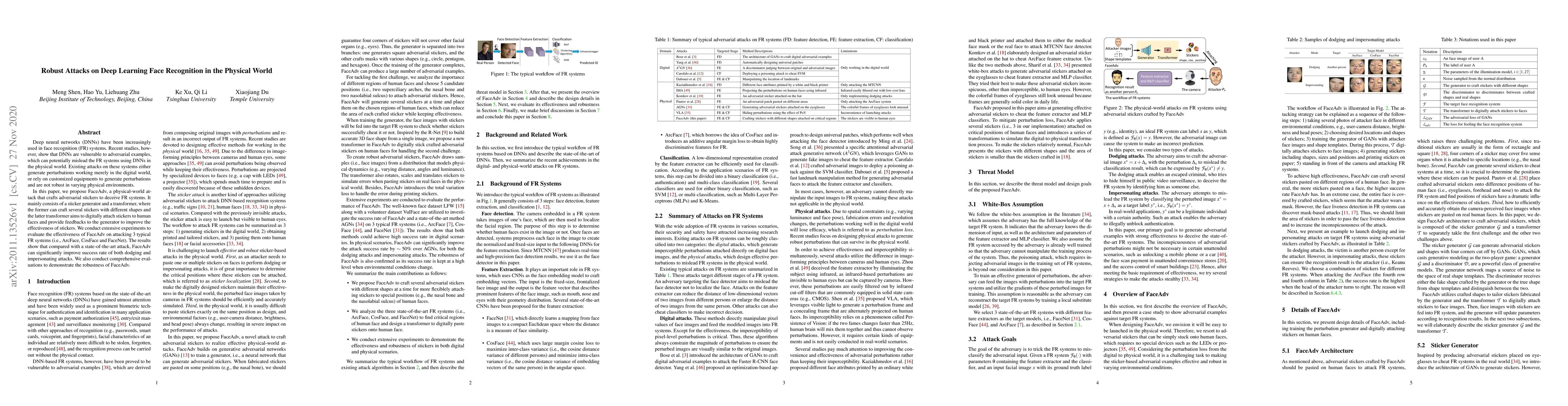 This paper introduces FaceAdv, a robust physical-world attack method that uses adversarial stickers to deceive deep learning face recognition systems. The proposed method significantly improves the success rate of both dodging and impersonating attacks compared to existing digital attacks, demonstrating its effectiveness and robustness across various face recognition systems.