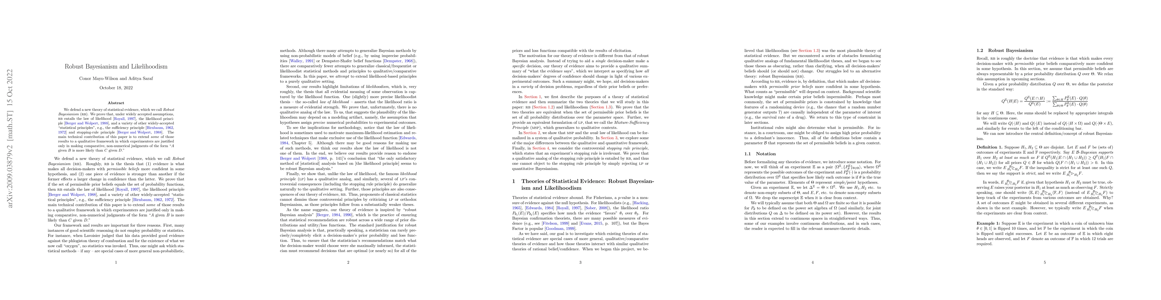 We defend a new theory of statistical evidence, which we call Robust Bayesianism (RB). We prove that, under widely accepted assumptions, RB entails the law of likelihood [Royall, 1997], the likelihood principle [Berger and Wolpert, 1988], and a variety of other widely-accepted "statistical principles", e.g., the sufficiency principle [Birnbaum, 1962, 1972] and stopping-rule principle [Berger and Wolpert, 1988]. The main technical contribution of this paper is to extend some of those results to a qualitative framework in which experimenters are justified only in making comparative, non-numerical judgments of the form "A given B is more likely than C given D."