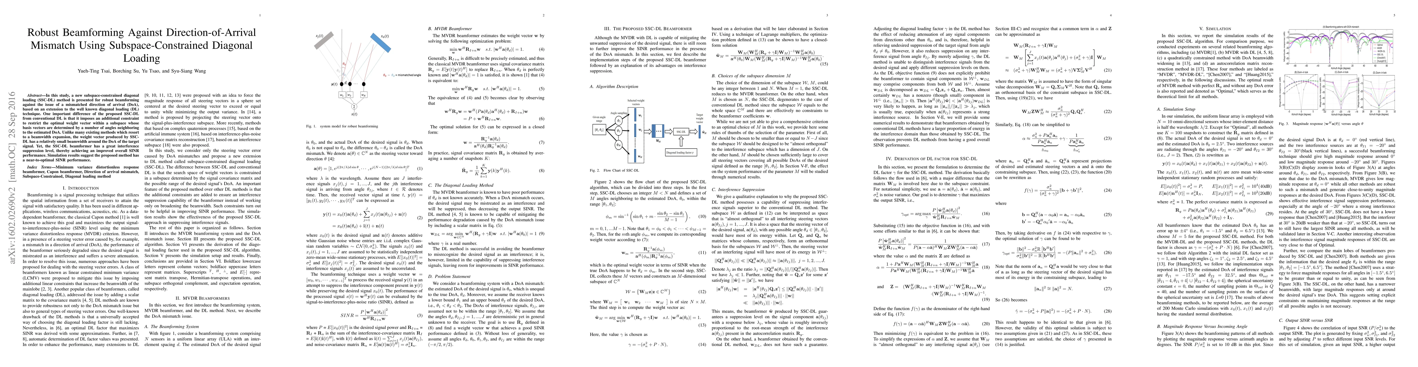 A new method called Subspace-Constrained Diagonal Loading (SSC-DL) is proposed to improve robust beamforming against direction of arrival mismatch, achieving a high interference suppression level while maintaining a narrow beamwidth around the target signal.