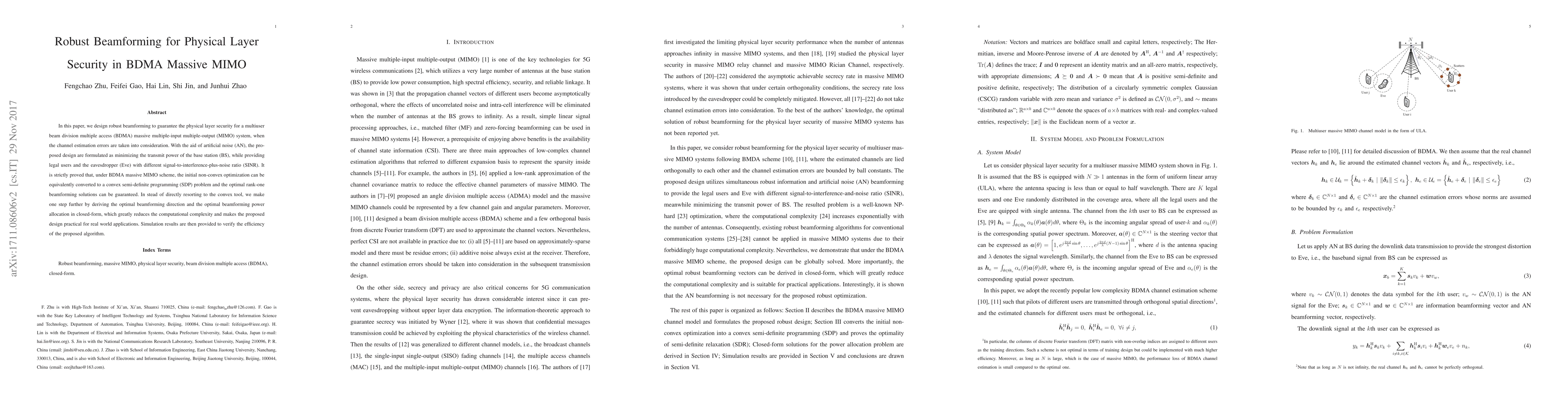 This paper proposes robust beamforming for physical layer security in BDMA massive MIMO systems, addressing channel estimation errors. The design minimizes the base station's transmit power while ensuring different SINR for legal users and an eavesdropper, converting the initial non-convex optimization into a convex SDP problem, and deriving optimal beamforming solutions in closed-form to reduce computational complexity.