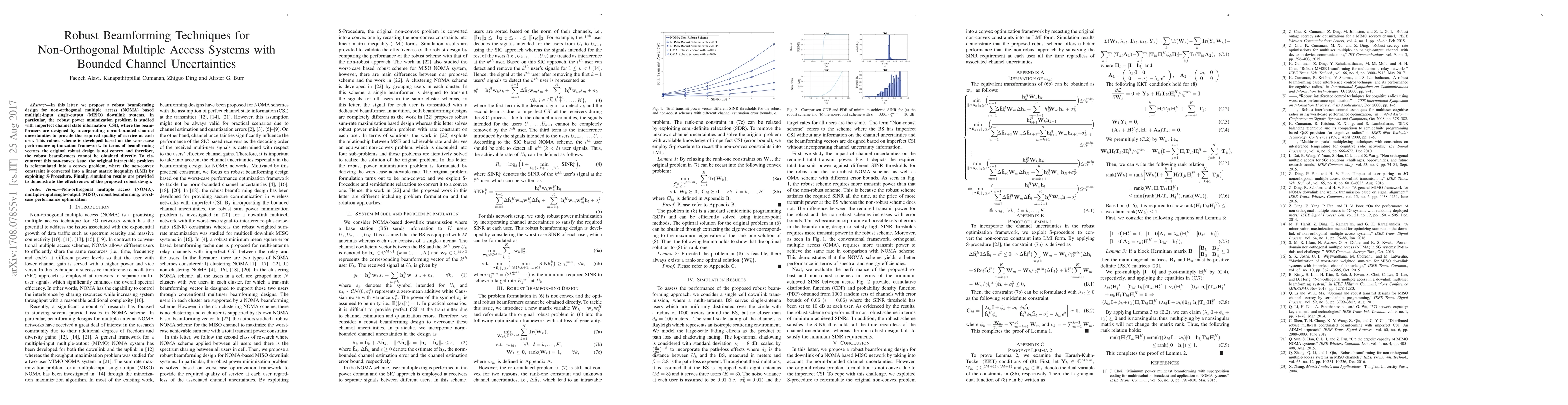 This paper proposes a robust beamforming technique for non-orthogonal multiple access (NOMA) in MISO systems, addressing imperfect channel state information (CSI) through norm-bounded uncertainties. The non-convex robust optimization problem is reformulated into a convex one using the S-Procedure and linear matrix inequality (LMI), enabling effective beamformer design.