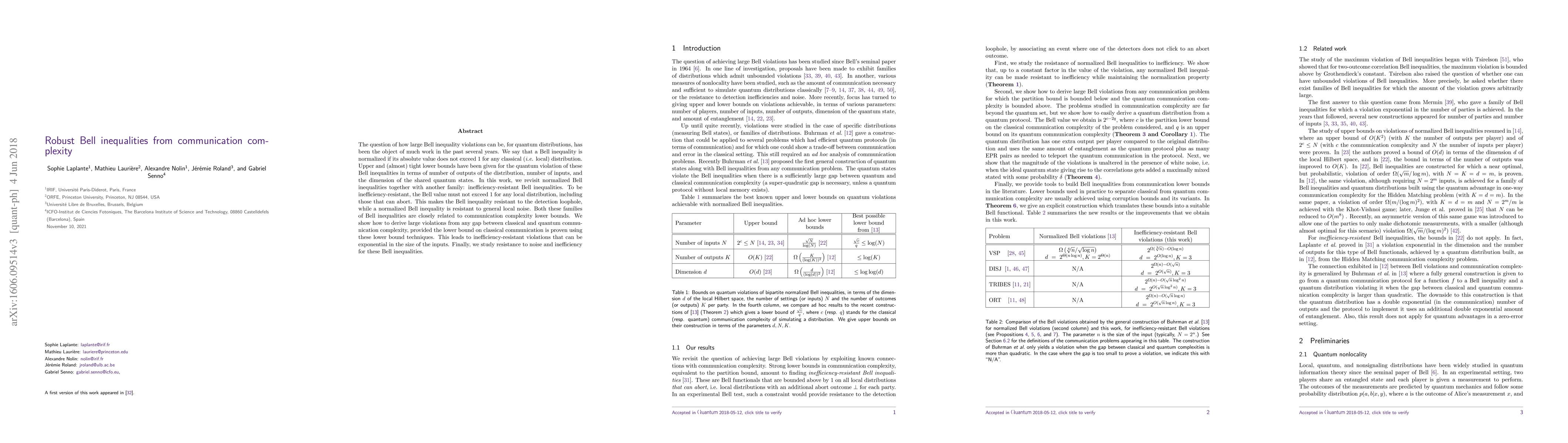 This paper explores robust Bell inequalities that are resistant to both detection loopholes and general local noise, deriving large violations from gaps in classical and quantum communication complexity. It demonstrates that these inefficiency-resistant Bell inequalities can achieve exponential violations, highlighting their robustness against noise and inefficiencies.