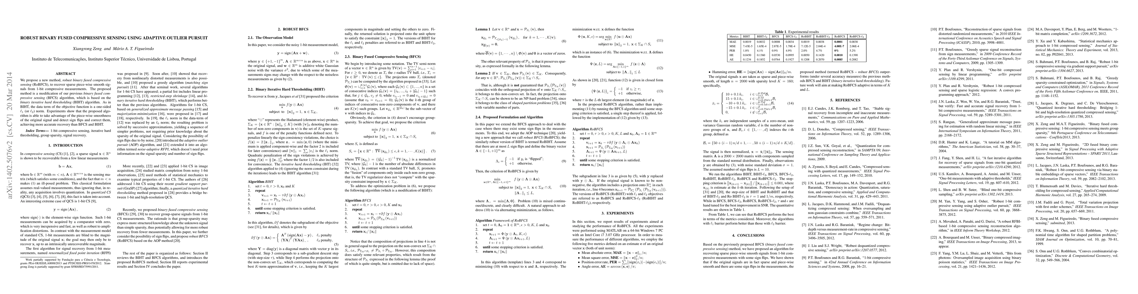 This paper introduces a new robust binary fused compressive sensing (RoBFCS) method for recovering sparse, piece-wise smooth signals from 1-bit measurements. The RoBFCS algorithm improves upon the binary fused compressive sensing (BFCS) method by better detecting and correcting sign flips, leading to more accurate signal recovery.