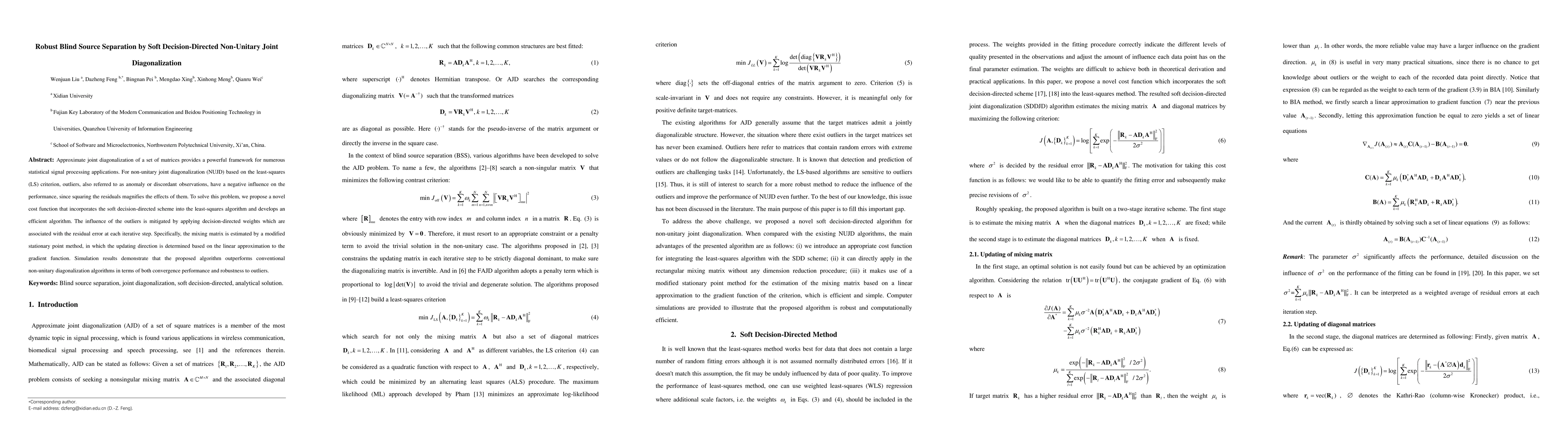 This paper proposes a novel soft decision-directed non-unitary joint diagonalization algorithm to mitigate the negative influence of outliers in least-squares criterion-based methods. The new algorithm outperforms conventional methods in convergence and robustness, as demonstrated by simulation results.