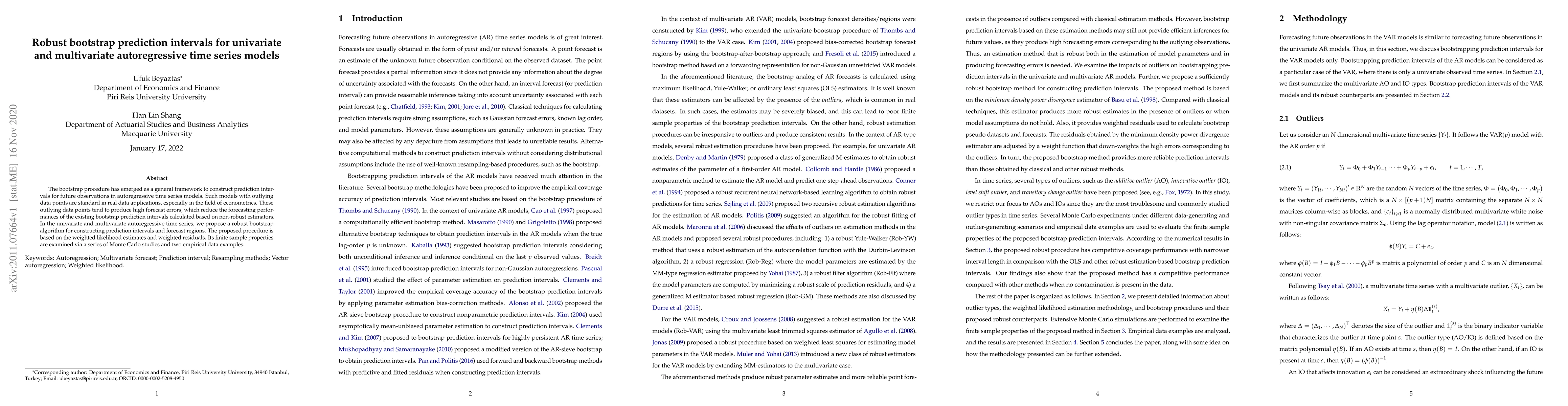 This paper proposes a robust bootstrap method for constructing prediction intervals in univariate and multivariate autoregressive time series models, addressing the issue of outlying data points that degrade existing bootstrap methods. The new approach uses weighted likelihood estimates and residuals, and its effectiveness is validated through Monte Carlo simulations and empirical examples.