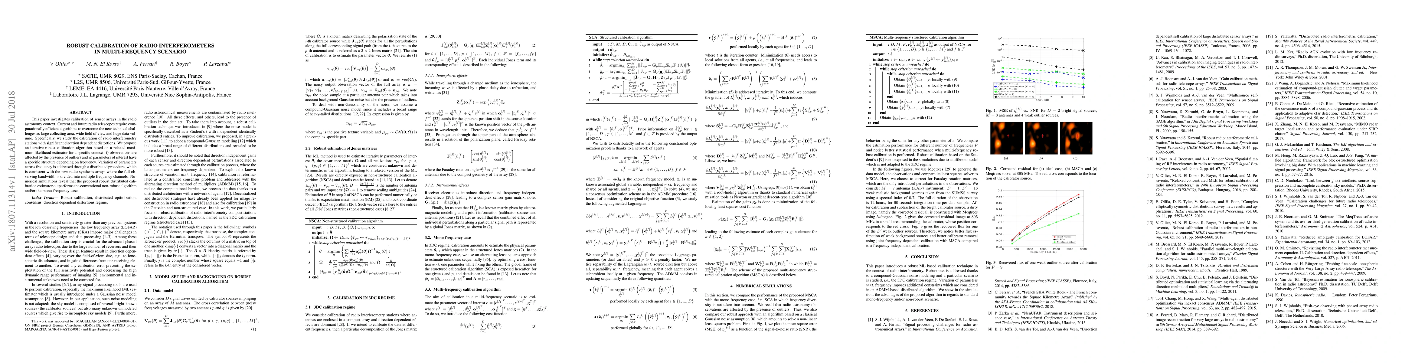 This paper investigates calibration of sensor arrays in the radio astronomy context. Current and future radio telescopes require computationally efficient algorithms to overcome the new technical challenges as large collecting area, wide field of view and huge data volume. Specifically, we study the calibration of radio interferometry stations with significant direction dependent distortions. We propose an iterative robust calibration algorithm based on a relaxed maximum likelihood estimator for a specific context: i) observations are affected by the presence of outliers and ii) parameters of interest have a specific structure depending on frequency. Variation of parameters across frequency is addressed through a distributed procedure, which is consistent with the new radio synthesis arrays where the full observing bandwidth is divided into multiple frequency channels. Numerical simulations reveal that the proposed robust distributed calibration estimator outperforms the conventional non-robust algorithm and/or the mono-frequency case.