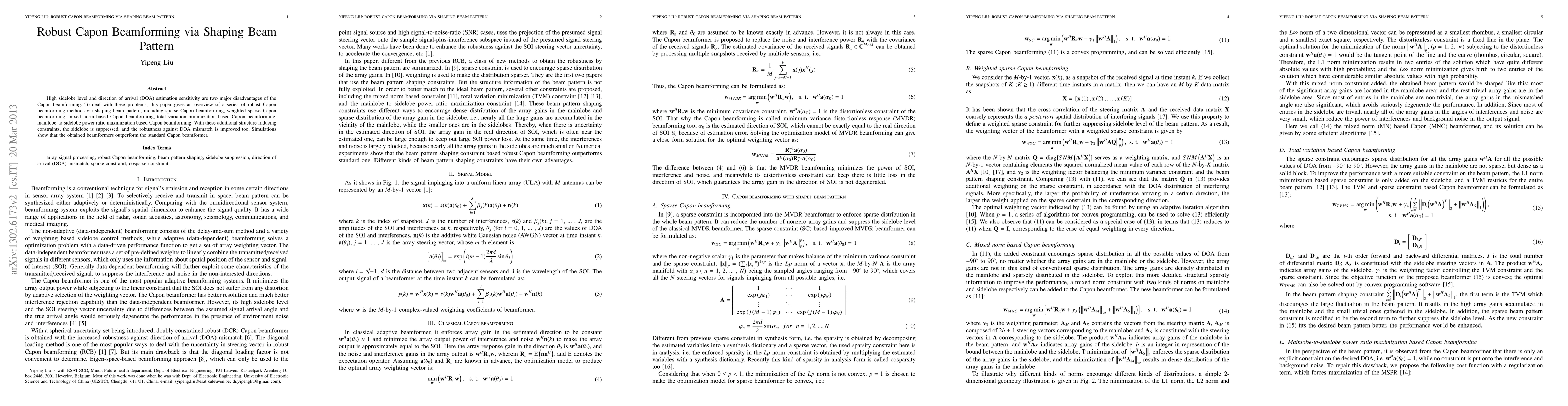 This paper proposes various robust Capon beamforming techniques that shape the beam pattern to suppress sidelobes and improve direction of arrival estimation robustness. These methods, including sparse and weighted variants, mixed norm, total variation minimization, and mainlobe-to-sidelobe ratio maximization, outperform the standard Capon beamformer in simulations.