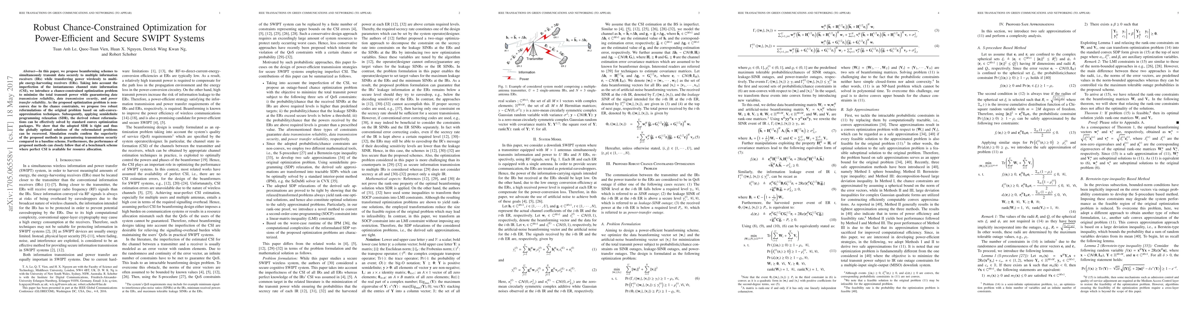 This paper proposes beamforming schemes for secure and efficient wireless power transfer (SWIPT) systems, addressing imperfect channel state information through chance-constrained optimization. The non-convex optimization problem is reformulated using safe-convex-approximation techniques and solved via semidefinite programming, demonstrating superior security guarantees and performance close to perfect channel state information scenarios.