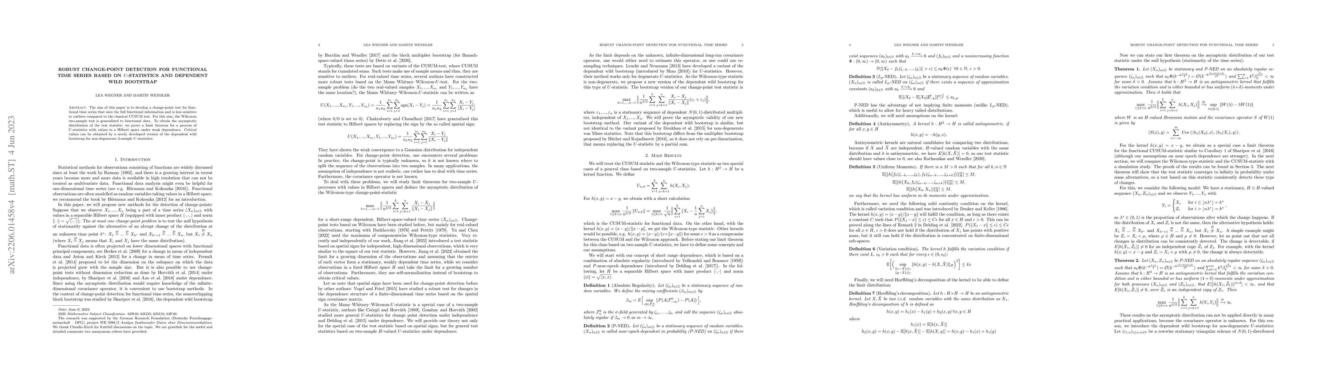 This paper proposes a robust change-point detection method for functional time series using $U$-statistics and a dependent wild bootstrap, generalizing the Wilcoxon test for functional data to enhance outlier resistance. The method's asymptotic distribution is derived via a limit theorem for $U$-statistics in Hilbert spaces under weak dependence.