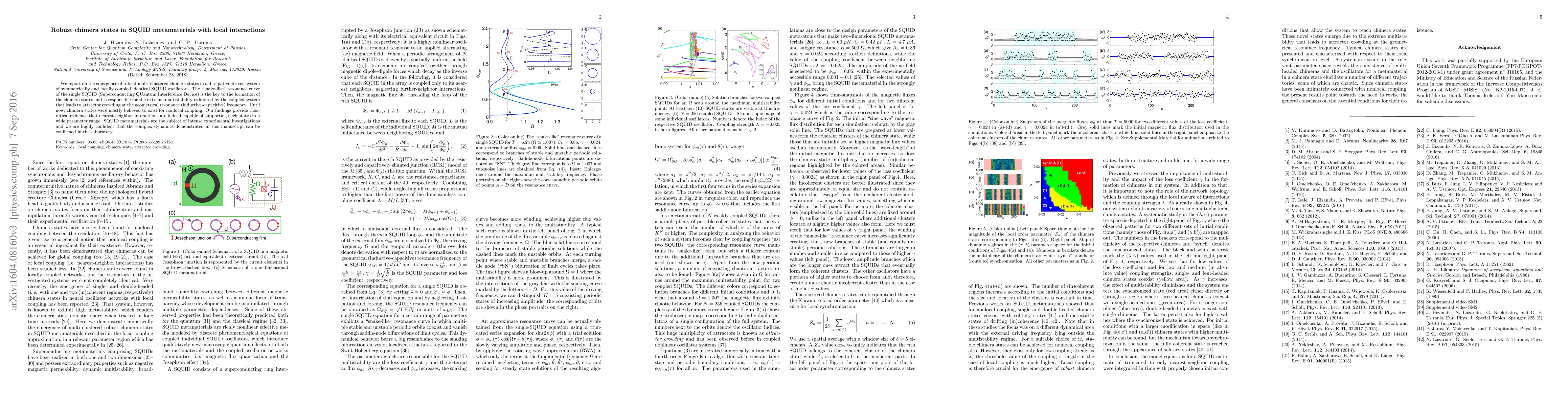 This paper demonstrates the emergence of robust multi-clustered chimera states in a system of locally coupled SQUID oscillators, challenging the belief that such states require nonlocal coupling. The unique "snake-like" resonance curve of SQUIDs enables extreme multistability and attractor crowding at the resonance frequency.