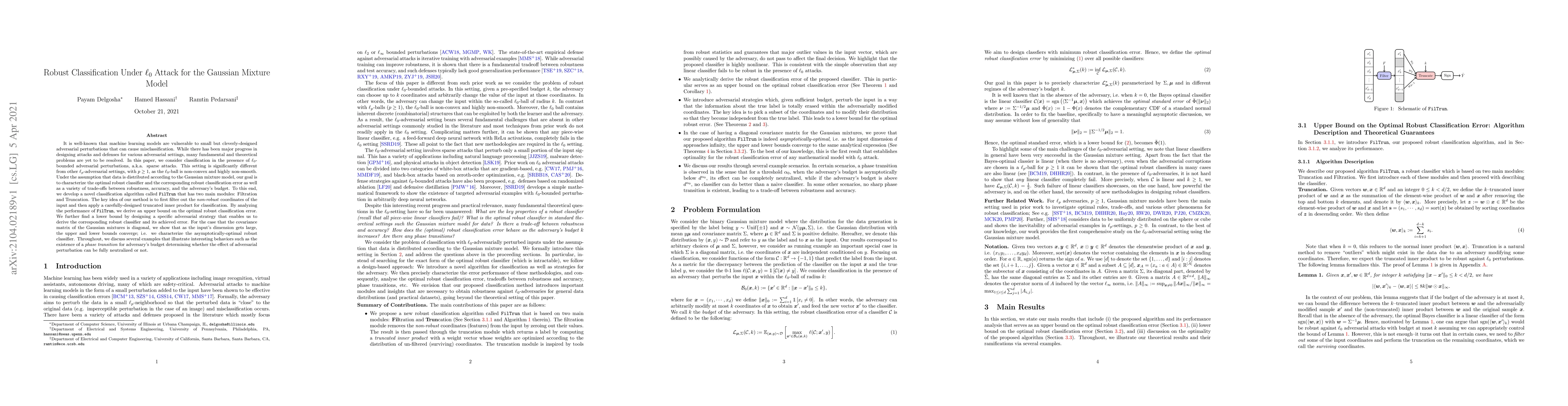 Researchers develop a novel algorithm called FilTrun that effectively classifies data under $ extit{l}_0$-bounded adversarial perturbations, achieving optimal robust classification error bounds and exploring trade-offs between robustness and accuracy.