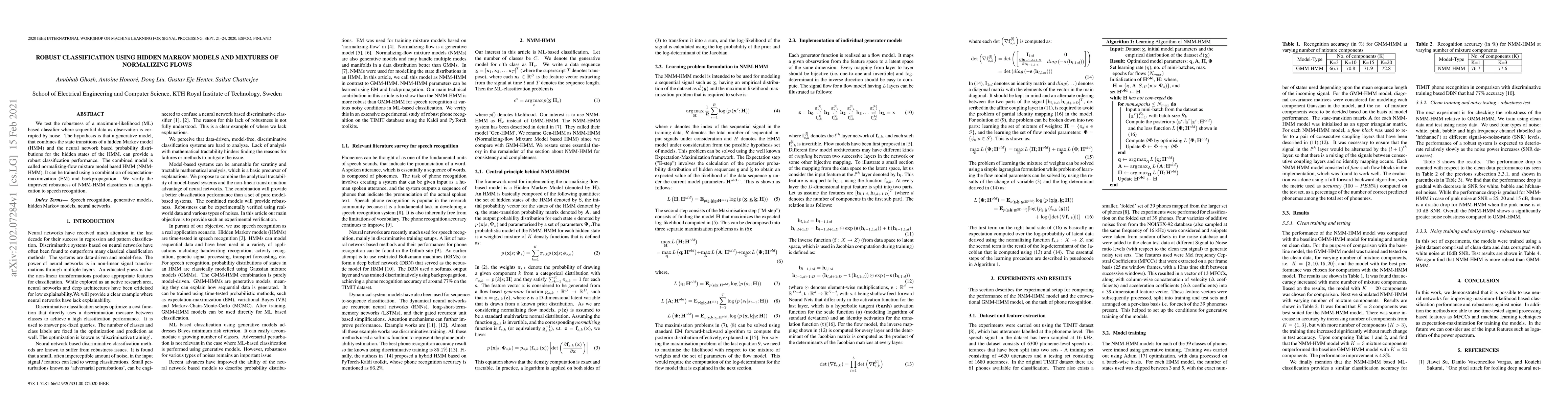 This research paper explores a new method for robust classification using a combination of Hidden Markov Models and neural network-based probability distributions, achieving improved performance in speech recognition applications.