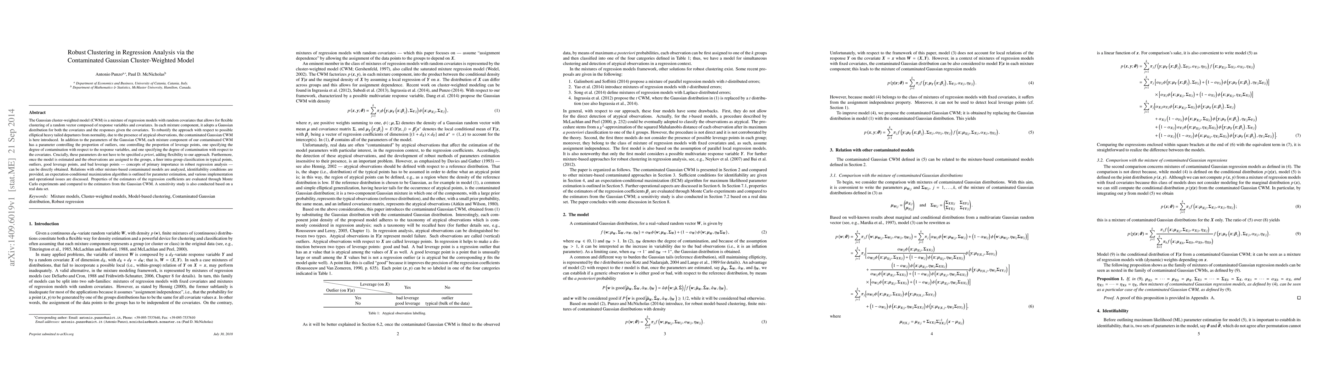 This paper introduces a contaminated Gaussian cluster-weighted model (CWM) for robust clustering in regression analysis, allowing for flexible clustering of response variables and covariates. It enhances the Gaussian CWM by incorporating parameters for outlier and leverage point proportions, which are estimated rather than specified a priori, thus providing greater flexibility and enabling finer intra-group classification.