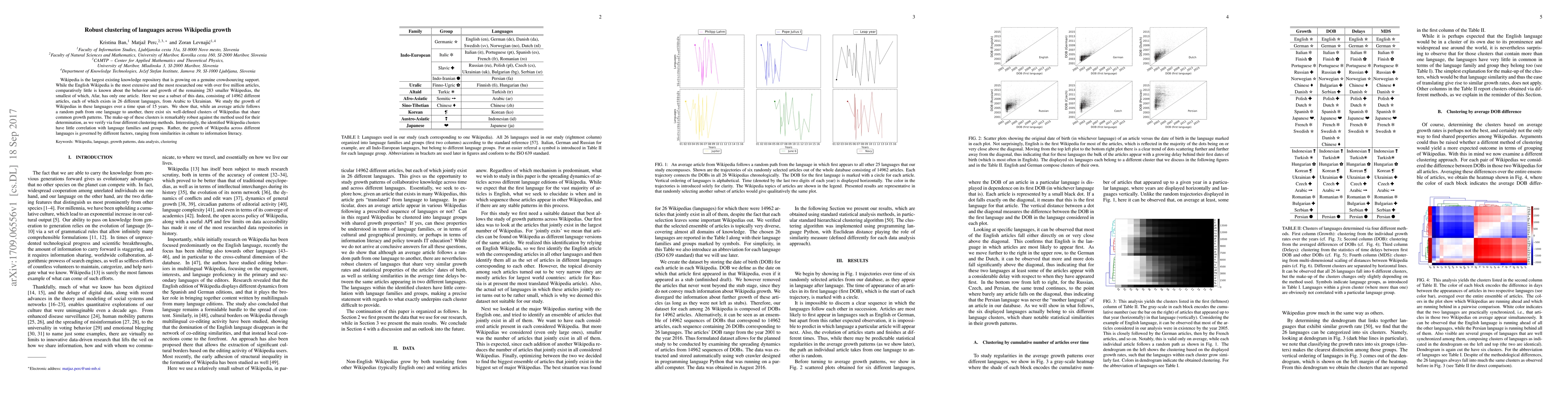 This research investigates the growth patterns of 283 Wikipedias across 26 languages over 15 years, revealing six clusters of Wikipedias with consistent growth trends, which are robust across different clustering methods. Contrary to expectations, these clusters correlate more with cultural and informational factors than with language families.