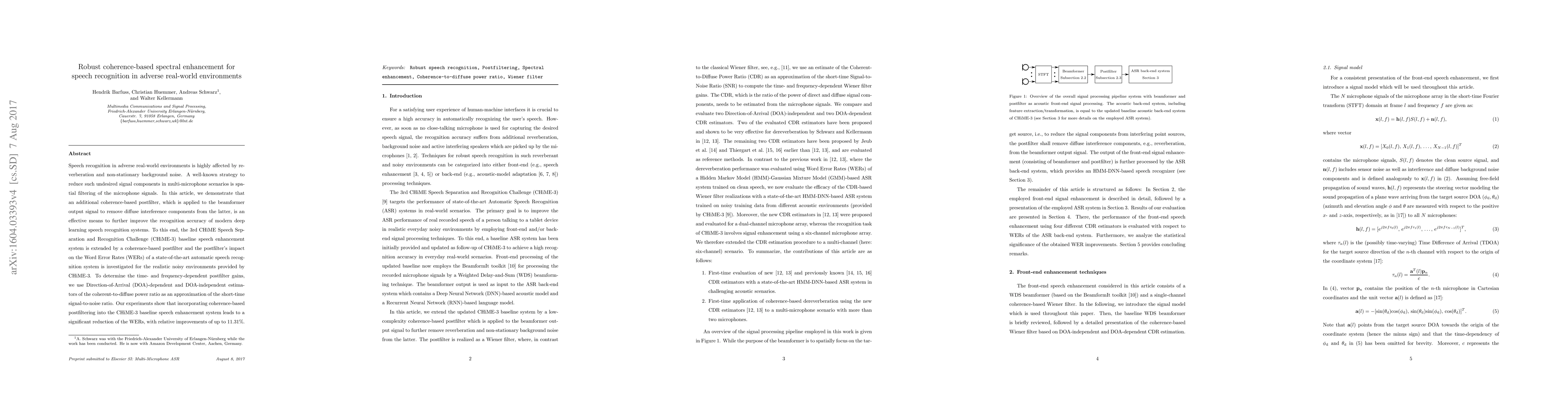 This paper proposes a coherence-based postfilter to enhance speech recognition in noisy and reverberant environments by removing diffuse interference components from beamformer outputs. Experiments show significant reductions in word error rates when applied to the CHiME-3 baseline system.