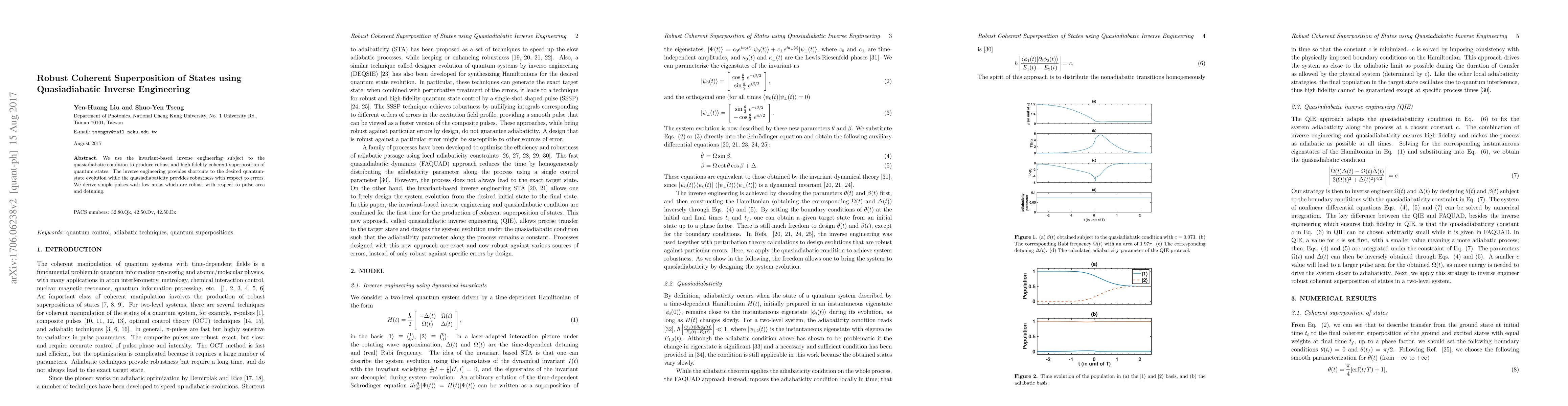 This paper presents a method for creating robust, high-fidelity coherent superpositions of quantum states using quasiadiabatic inverse engineering. The approach leverages simple pulses with low areas that maintain robustness against errors, offering a practical solution for quantum state manipulation.