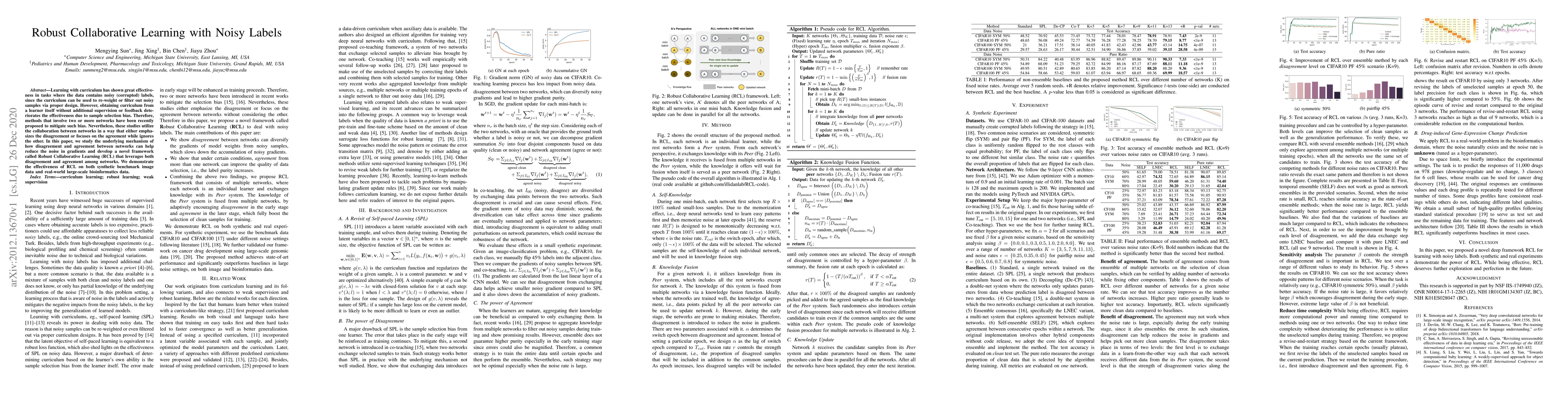 A new framework called Robust Collaborative Learning (RCL) is proposed to reduce noise in gradients by leveraging both disagreement and agreement among multiple networks, demonstrating its effectiveness on synthetic and real-world data.