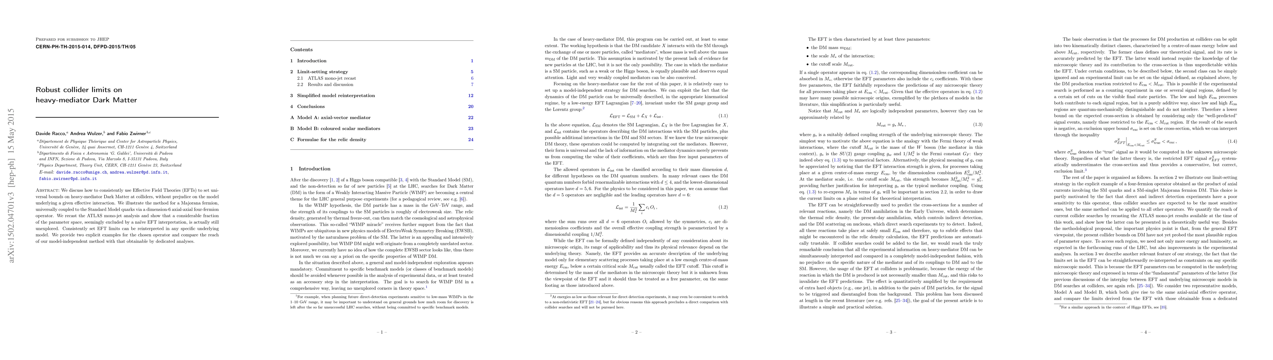 This paper presents a method to set robust collider limits on heavy-mediator Dark Matter using Effective Field Theories (EFTs) without bias towards specific models. By reinterpreting the ATLAS mono-jet analysis, it demonstrates that a significant portion of parameter space remains unexplored, offering a more comprehensive approach than naive EFT interpretations.