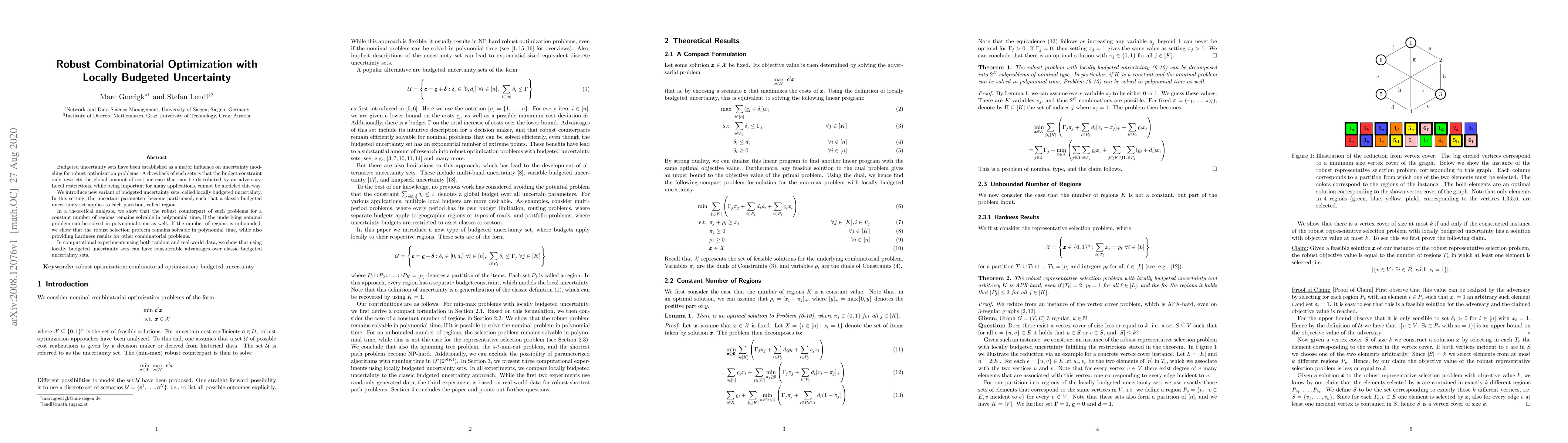 This paper introduces locally budgeted uncertainty sets to model local restrictions in robust optimization problems, partitioning uncertain parameters into regions where classic budgeted uncertainty sets apply. The authors demonstrate that these new sets can be solved in polynomial time under certain conditions and show advantages over traditional sets in computational experiments.