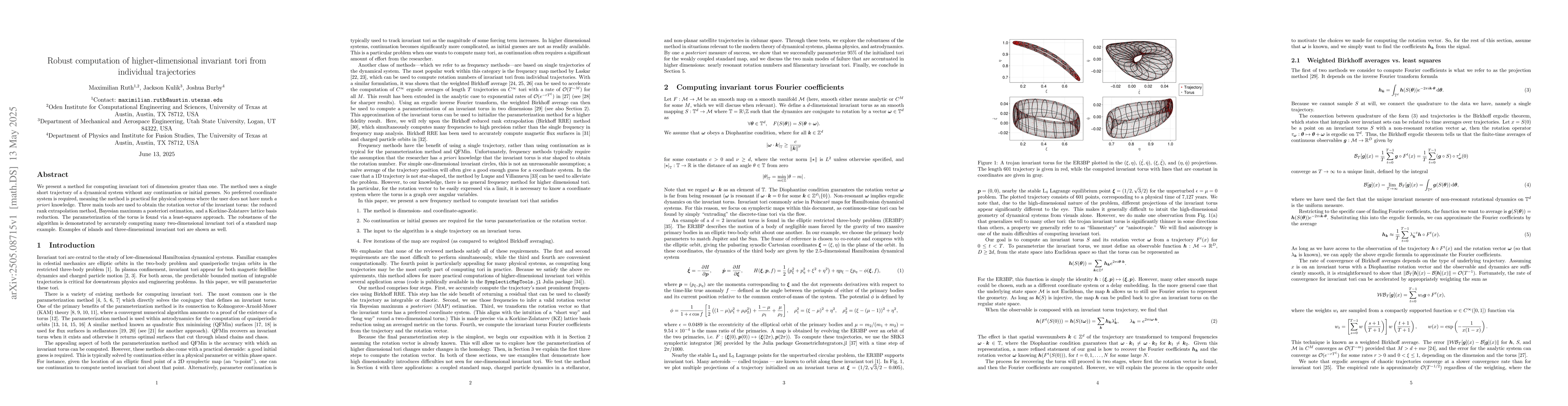 The main technical contribution is the development of a robust algorithm for computing invariant tori from a single short trajectory without requiring a preferred coordinate system or initial guesses.
