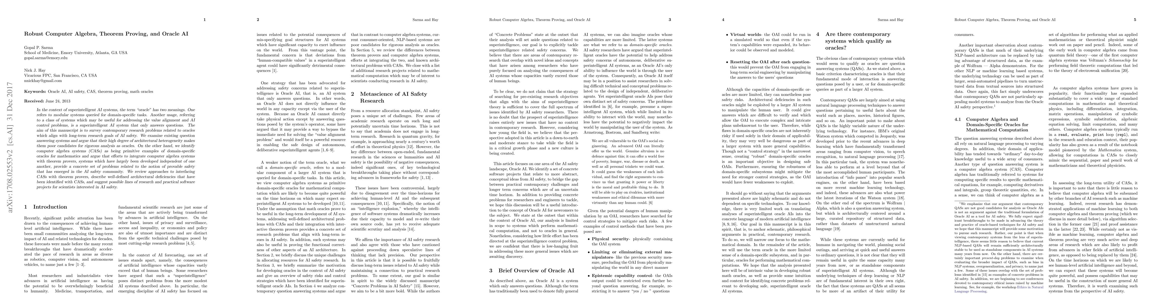 This paper surveys research on oracle AI systems, focusing on their role in AI safety, and critiques the architectural heterogeneity of current question-answering systems. It highlights computer algebra systems as primitive oracles and discusses integrating them with theorem provers to address AI safety concerns.