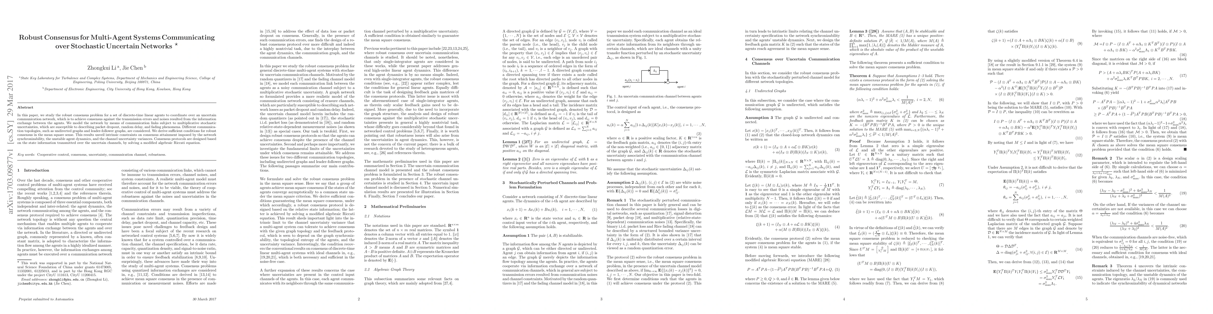 Researchers developed consensus protocols for multi-agent systems that can handle uncertain communication networks, including packet dropout and channel noise. The study revealed key constraints on achieving consensus, including network synchronizability and agent dynamics.