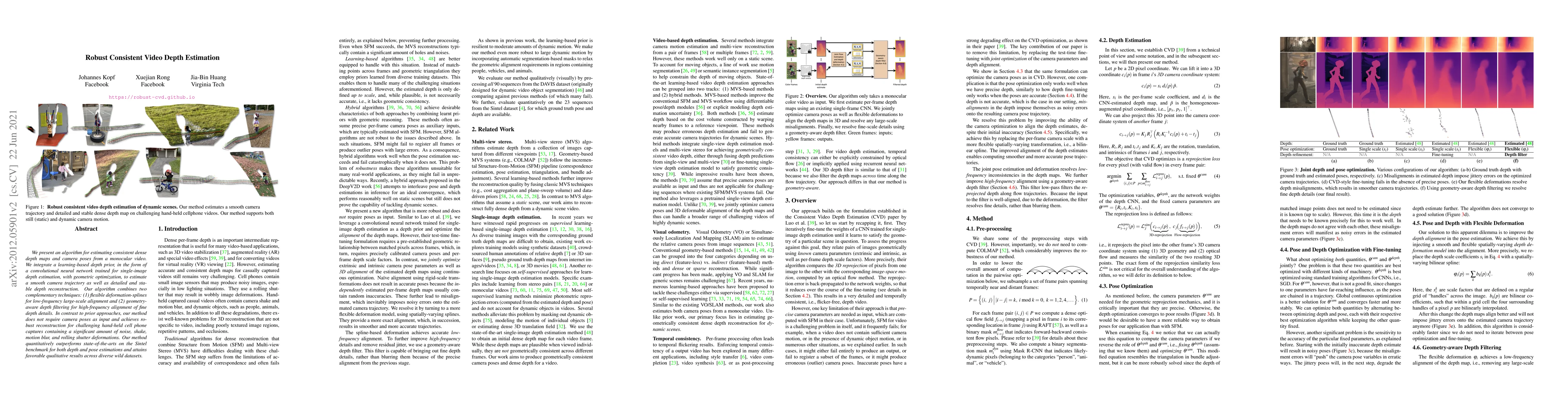 This paper proposes an algorithm for estimating consistent dense depth maps and camera poses from monocular video, integrating a convolutional neural network with geometric optimization. It achieves robust reconstructions in challenging conditions, outperforming state-of-the-art methods on benchmarks and diverse datasets.